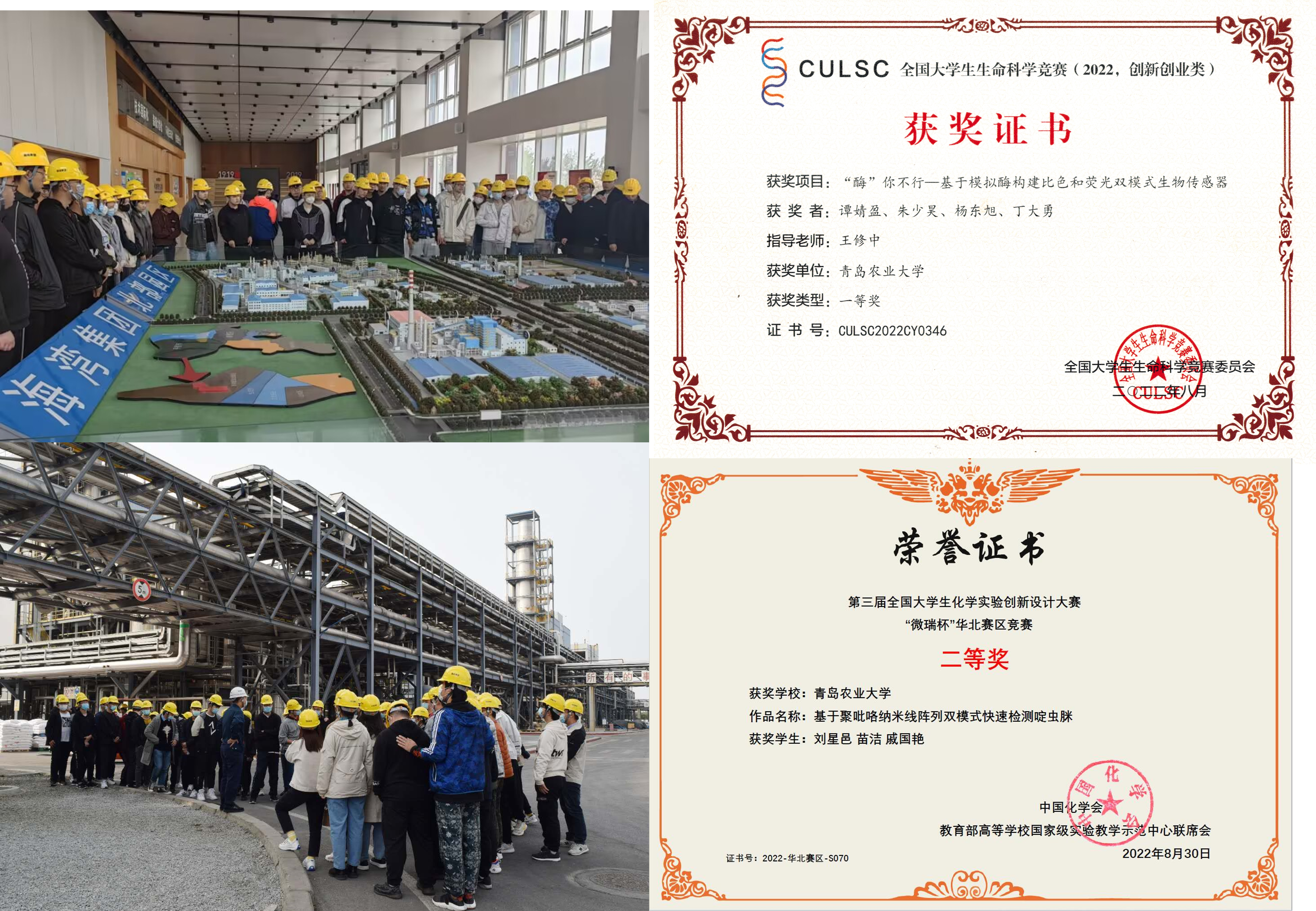 应用化学专业员工企业实习和部分竞赛获奖情况