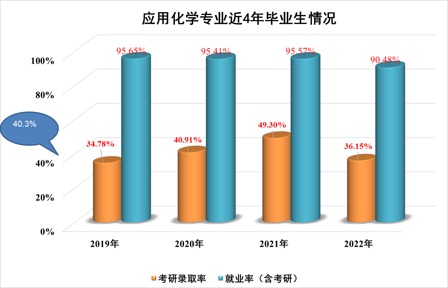 应用化学专业19-22年连续四届就业情况