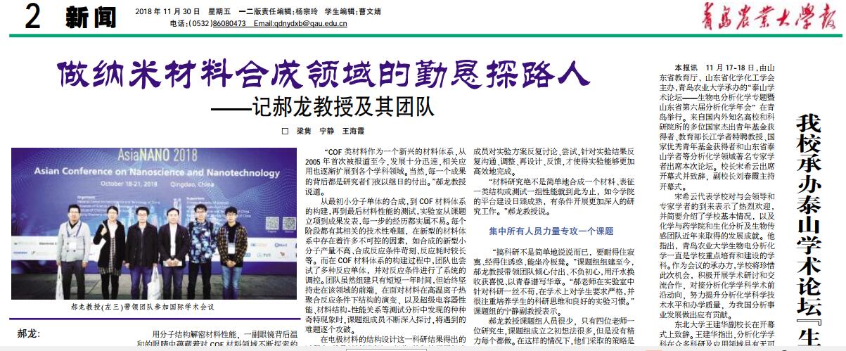 课题组科研经历在《suncitygroup太阳集团报》报道