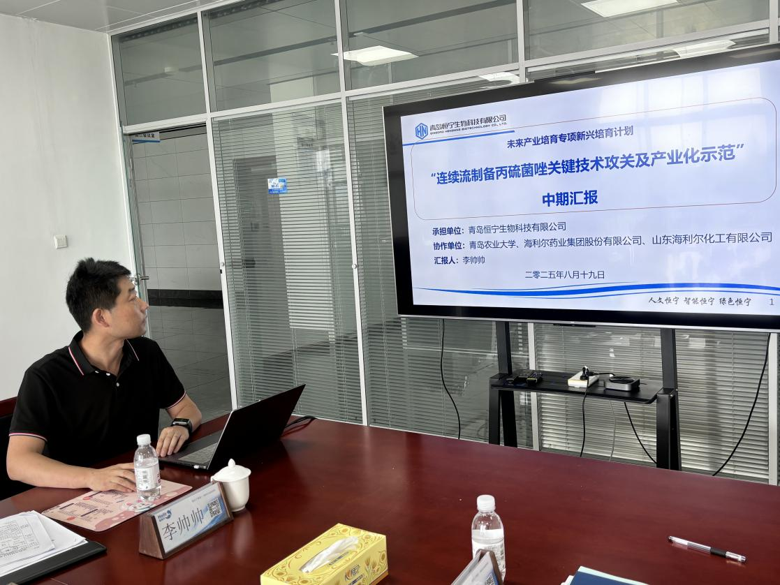 8月19日,由海利尔药业集团全资子公司——恒宁生物科技有限公司牵头,suncitygroup太阳集团等单位联合承担的青岛市关键技术攻关项目“连续流制备丙硫菌唑关键技术攻关及产业化示范”中期汇报会在恒宁生物科技有限公司举行,本项目计划两年完成,项目资金预算2500万元。青岛市科技局、平度市工信局相关领导及专家,海利尔药业集团、恒宁生物相关领导参会。
