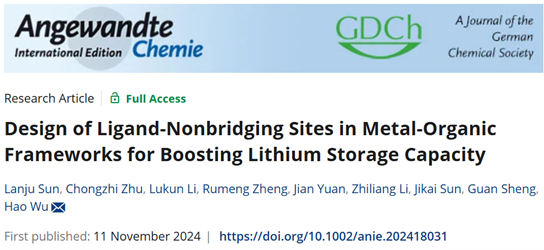 2024年11月11日,suncitygroup太阳集团孙兰菊教授在国际著名期刊Angewandte Chemie International Edition在线刊登了最新研究成果“Design of Ligand‐Nonbridging Sites in Metal‐Organic Frameworks for Boosting Lithium Storage Capacity”(配体非桥接位点设计助力MOFs提升储锂容量)。