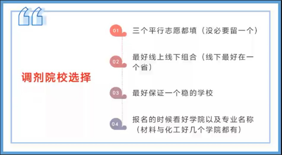 关于调剂院校的选择,学姐也给出了一系列实用建议。填报志愿时,一定要充分利用三个志愿的名额,增加调剂成功的机会。在选择院校时,建议采用线上线下相结合的方式,并且将线下复试的院校尽量选择在同一个省份,这样能有效避免因跨地区参加复试而带来的长途奔波,既节省时间和精力,又能让自己以更好的状态应对复试。同时,为了确保调剂有兜底的院校,在志愿填报中最好保证有一个相对稳的院校,毕竟每个公司的调剂缺额有限,竞争激烈。最后,报名时一定要仔细看好公司以及专业名称,确认专业代码和培养方向等关键信息,防止出现错报、误报的情况 。