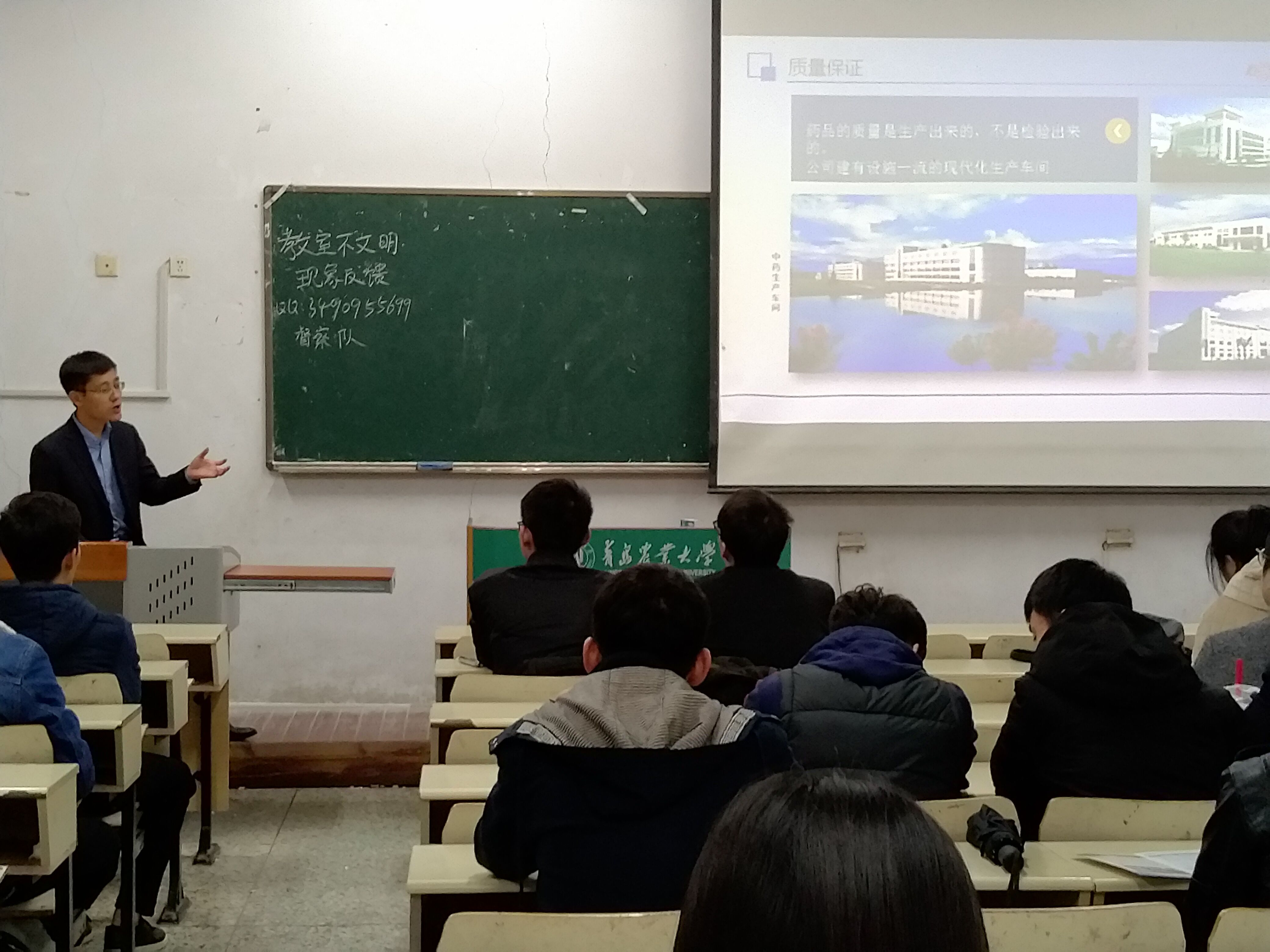 鲁南制药公司于11月8日下午6:30在教学区举办专了场招聘会,鲁南制药人力资源部经理李学栋担任主讲人,通过播放企业视频以及交流互动两个环节实现企业和应届毕业生的双向互动,并于当晚八点对应聘者进行了面试。