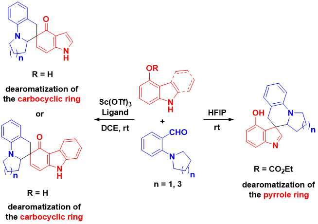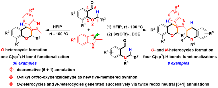 2. 融合sp3碳氢键官能化过程的去芳香化反应构建手性稠杂环化合物(21978144),