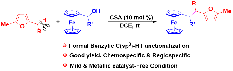 19.  Didi Ren, Lubin Xu, Liang Wang*, Shuai-Shuai Li*, Catalytic Formal Benzylic C−H Bond Functionalization of 2,5-Dialkylfuran Derivatives with Ferrocenyl Alcohols as Alkylation Reagents, Org. Lett. 2019, 21, 627–631. (IF = 6.005, 中科院top一区)
