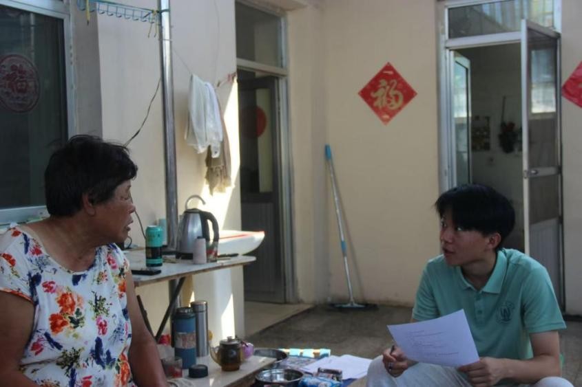 图为成员询问李奶奶垃圾处理问题
