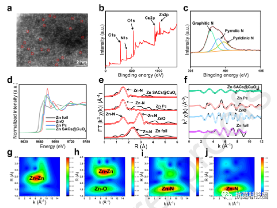 要点一:材料设计:在这项研究中,作者通过将 MOF 衍生的锌单原子与 CuO2(Zn SACs@CuO2)修饰在一起,制备了一种近红外响应杂化纳米酶系统,用于 PTT/CDT 协同抗菌治疗(方案 1)。Zn SACs 是通过表面保护热解策略从具有代表性的 MOF 前体沸石咪唑酸框架-8(ZIF-8)中获得的。此外,最终的 Zn SACs@CuO2 杂化纳米材料是在含有 CuCl2、H2O2 和氢氧化钠的水反应溶液中简单合成的,其中 Zn SACs 作为前驱体,聚乙烯吡咯烷酮(PVP)作为稳定剂来修饰 CuO2 的表面并控制其粒径(图 1a)。