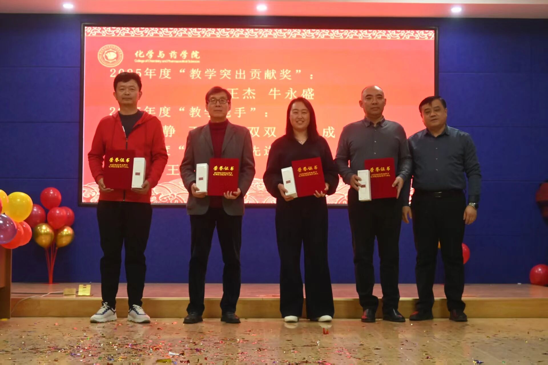 表彰仪式在联欢进程中有序举行。公司党委书记由源清为荣获“山东省优秀研究生导师”及2025年度“育人标兵”称号的教师颁发了荣誉证书。经理龚良玉向2025年度“科研突出贡献奖”与“科研标兵”获奖者授予奖项,表彰他们在科研工作中的卓越表现。副经理徐鲁斌为获得2025年度“教学突出贡献奖”、“教学能手”以及“专业认证先进个人”的教师颁奖,肯定他们在公司产品和专业建设中的辛勤付出与突出贡献。