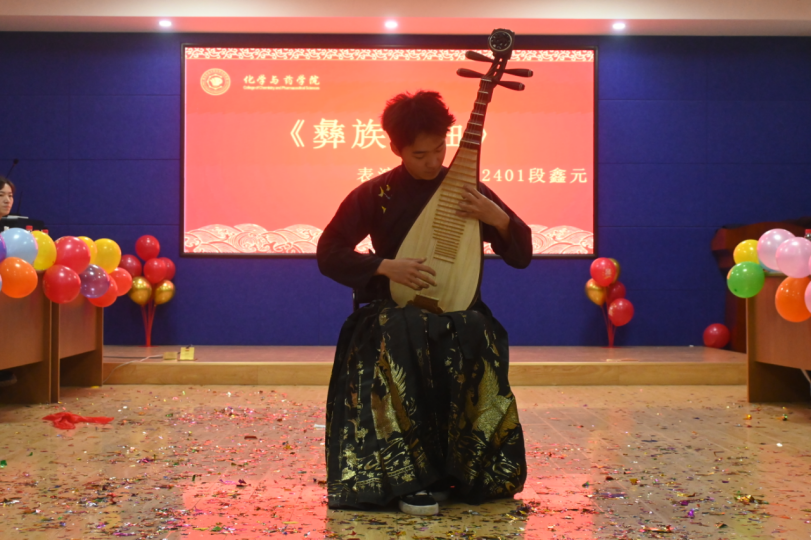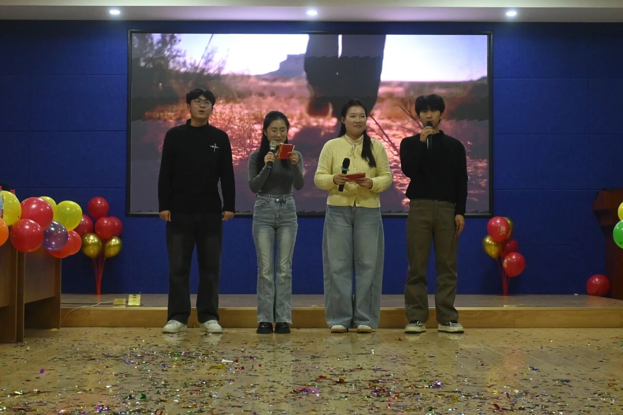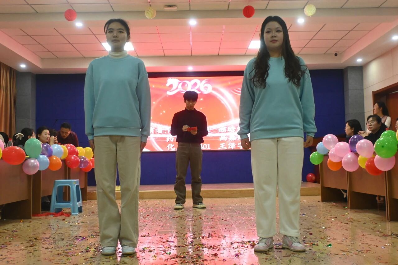 文艺表演与互动环节精彩纷呈,气氛活跃。趣味健身操《“化”动力,“药”未来》以充满活力的动作生动展现出教职工的蓬勃朝气;歌曲《“材”神到》节奏欢快、寓意吉祥,传递出对新年的美好憧憬;师生合唱《我相信》抒发了奋发向前、共筑未来的坚定信念;由辅导员老师们带来的趣味舞蹈《第八套广播体操》幽默新颖,引来阵阵欢笑与掌声;琵琶独奏《彝族舞曲》旋律悠扬婉转,引人入胜;歌舞《相亲相爱》舞步欢快、配合默契;朗诵《她的路,我们的光》以深情的表达,歌颂伟大祖国的发展历程与光明前景,展现出深沉的家国情怀与时代精神。穿插于节目之间的趣味游戏、幸运抽奖等互动环节,吸引教职工们踊跃参与,现场掌声、笑声与喝彩声不断。