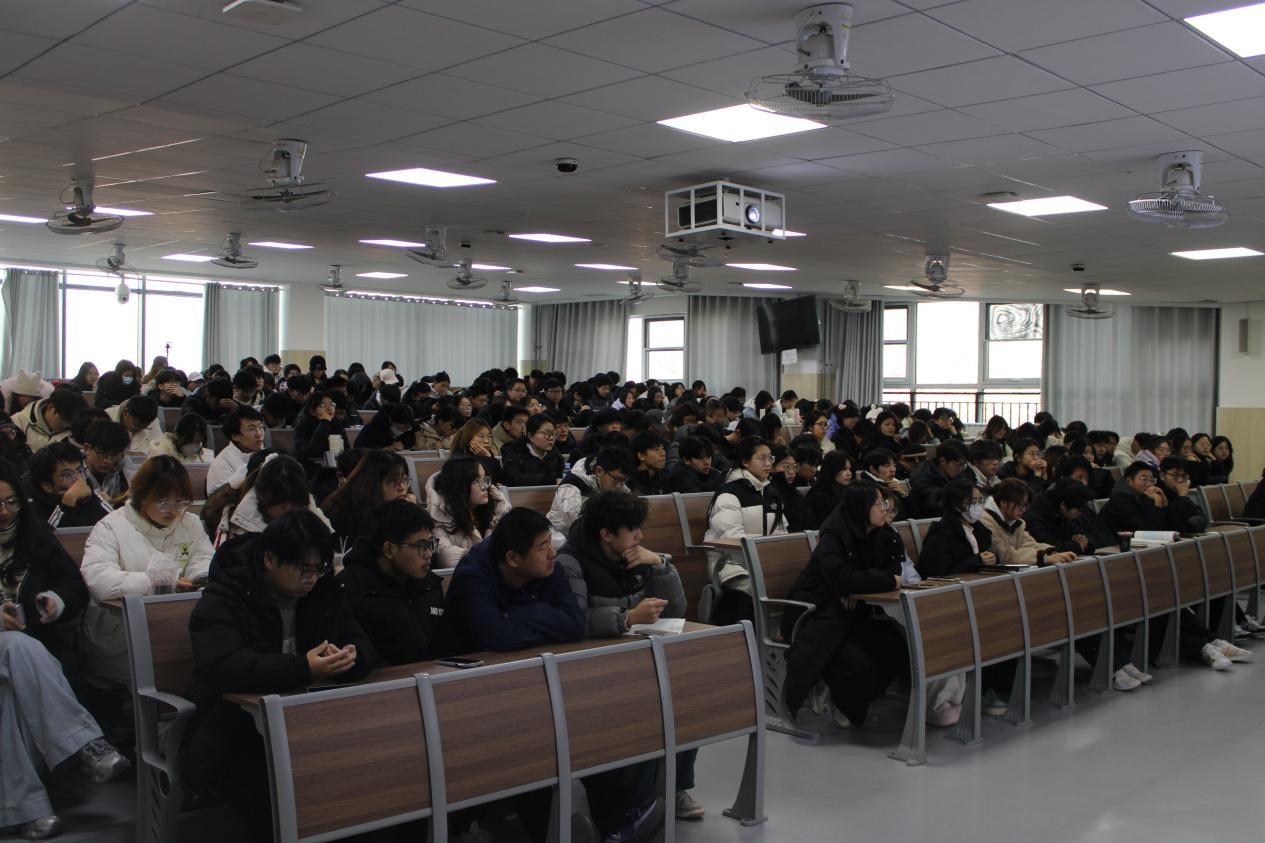 讲座中,李萌萌结合自身求学历程与科研实践经验,系统阐述了专业学习与未来职业选择之间的内在联系,并为同学们提供了具有可操作性的职业规划建议。随后,汪培育围绕“普通人如何突破局限,创造价值”的主题展开经验分享。他结合自身突破职业发展瓶颈的经验,深入探讨了职业生涯规划的具体路径,并以“你想成为什么样的人”“社会需要什么样的人”等一系列深刻问题,引导同学们展开阶段性目标思考。在课外学习方面,汪培育强调“以终为始”的规划理念与持之以恒的积累之道,同时向同学们推荐了多项优质学习资源,现场互动踊跃,反响热烈。