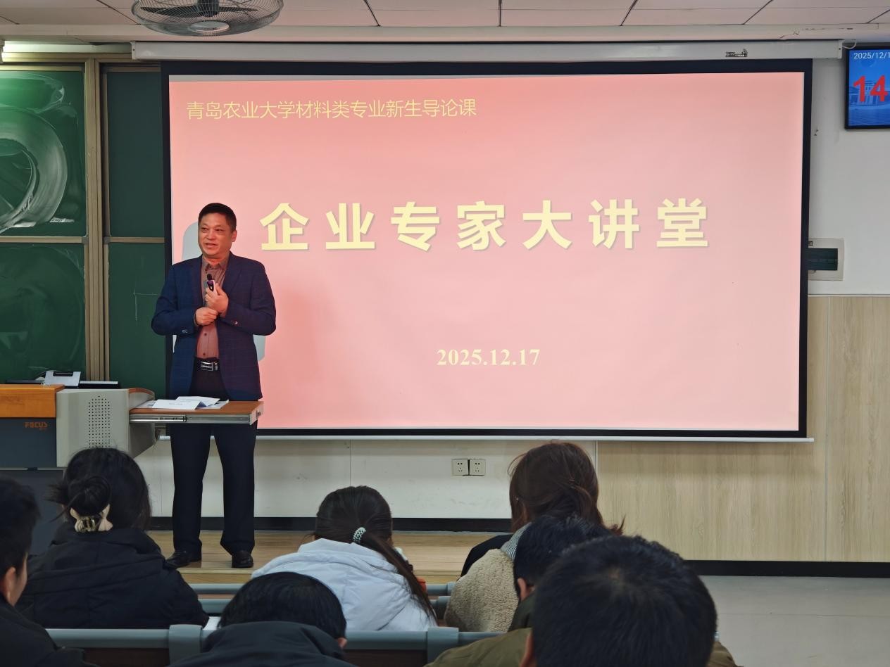 12月16日至17日,公司开展新生导论课系列讲座。讲座特邀百草边大生物科技(青岛)有限公司总经理汪培育、李萌萌博士以及青岛吉尔利塑织有限公司总经理李涛担任主讲嘉宾,公司应用化学、材料化学、功能材料专业2025级员工参加。