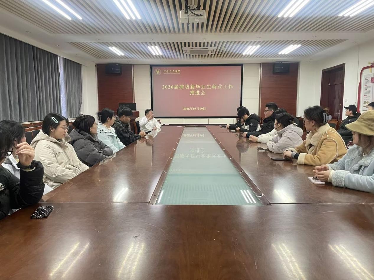 会议通报了当前潍坊籍毕业生就业进展,结合化学、药学专业特点与潍坊生物医药、新材料等主导产业需求,分析了员工在职业规划、岗位匹配、求职心态等方面存在的突出问题。刘兴华强调,做好生源地就业帮扶既是育人责任,也是服务地方发展的具体行动,要摒弃粗放式服务,坚持“一人一策”、精准施策。