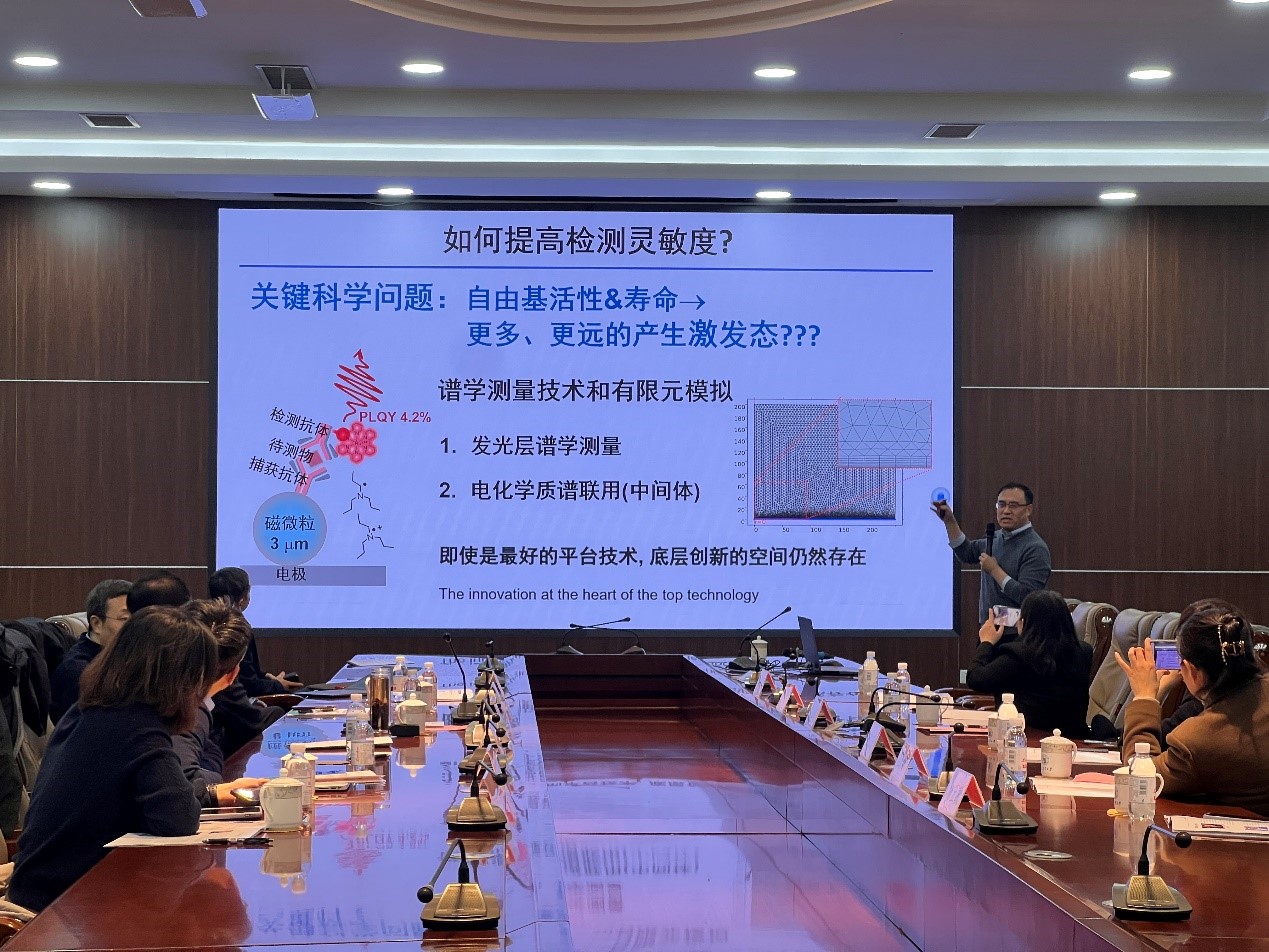 12 月 12 日,国家杰出青年科学基金获得者唐波教授、汪乐余教授、苏彬教授、赵永席教授、李乐乐研究员受邀分别做了题为“海水光电制氢”、“含氟纳米探针构筑及活体深度组织成像”、“电化学发光时空分辨测量”、“DNA 编码的生物分析”、“时空选择性分子传感与成像”的报告。