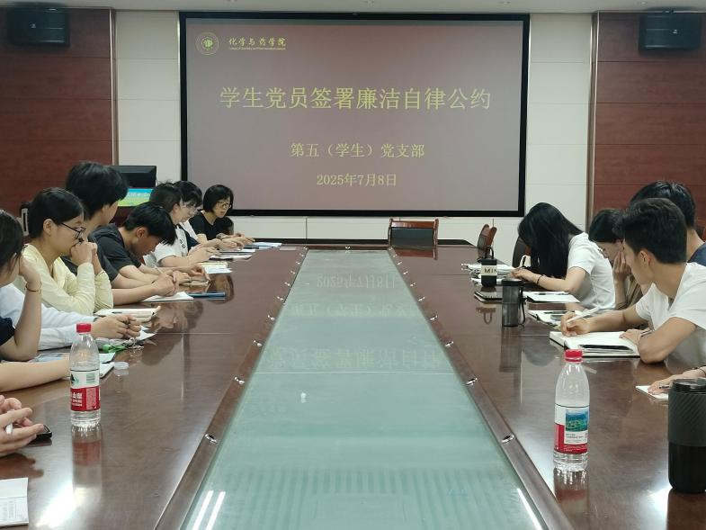 为深入贯彻落实中央八项规定精神,强化员工党员廉洁自律意识,充分发挥先锋模范作用,7月8日,公司第五(员工)党支部于化学楼207会议室开展廉洁自律公约签署活动,会议由党支部书记黄海红主持,全体员工党员参加。