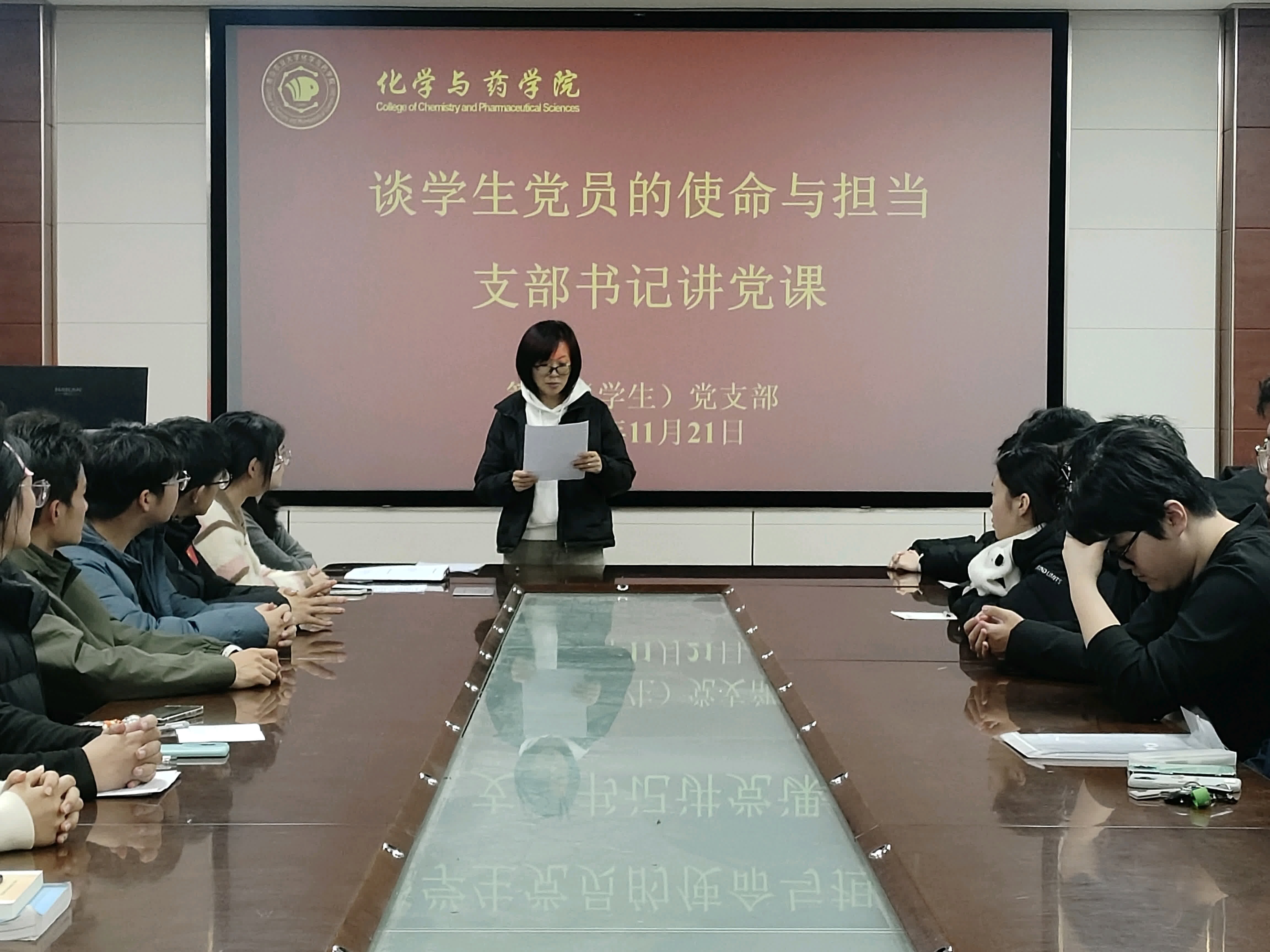 为深入学习贯彻党的二十届四中全会精神,强化员工党员的责任意识与先锋模范作用,11月21日,公司第五(员工)党支部在化学楼207会议室组织开展“谈员工党员的使命与担当”专题党课。第五党支部书记黄海红主讲,党支部全体党员参加学习。