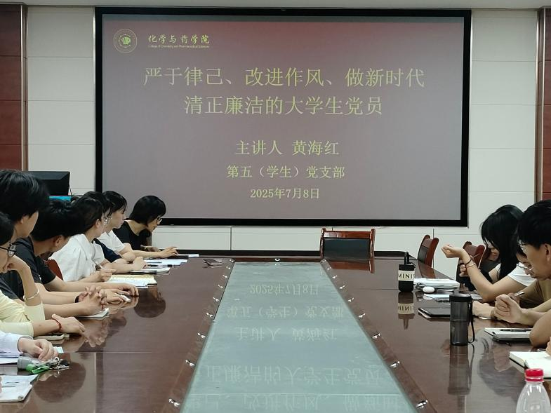 为加强老员工党员党性修养,提升廉洁自律意识,7月8日,suncitygroup太阳集团化学与药学公司第五(员工)党支部于化学楼207会议室 开展“严于律己,改进作风,做新时代清正廉洁的老员工党员”专题党课。此次党课由党支部书记黄海红主持召开,支部全体党员参与。