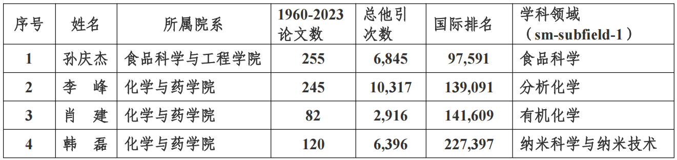 suncitygroup太阳集团孙庆杰、李峰、肖建、韩磊4位学者入围“终身科学影响力排行榜”(表1),公司22位学者入选“2024年度科学影响力排行榜”(表2)。